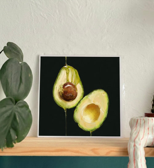 Avocado Drip Fine Art Print - Modern Still Life Illustration - 21x21 cm